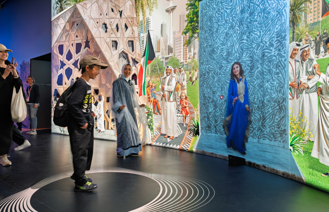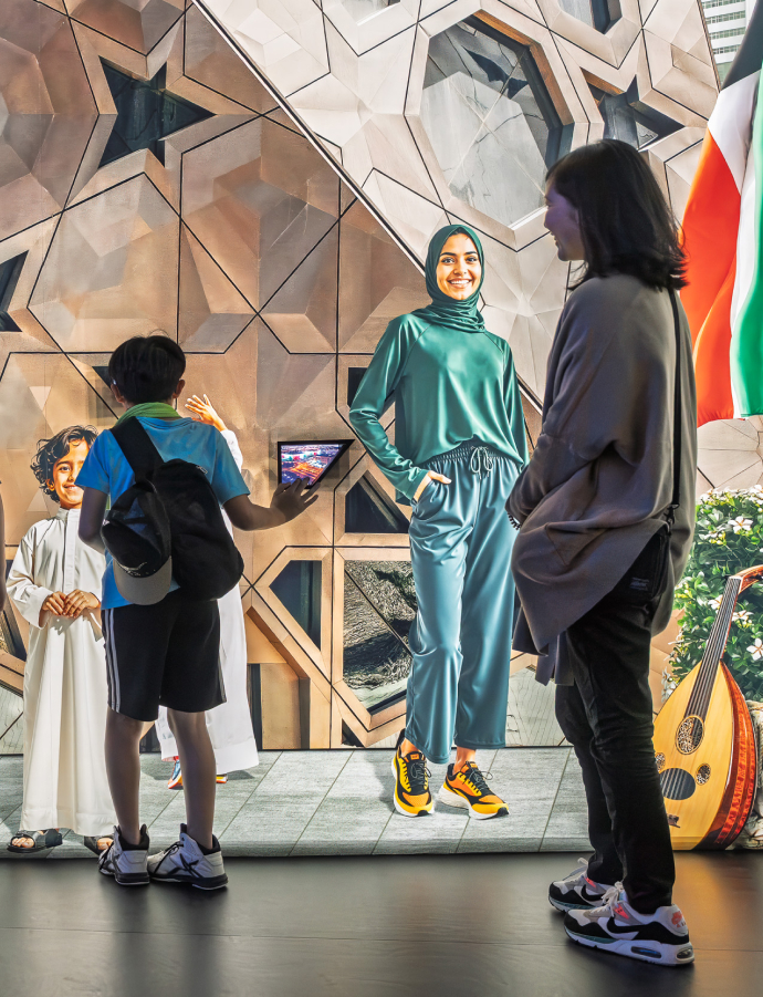 "People & Culture" shifted the focus to the present. A vast interactive wall - created with generative tools and layered content - mapped Kuwait’s social fabric through its people. Visitors engaged with themes of culture, sustainability, humanitarian efforts, and Vision 2035, gaining insight into the projects shaping the nation’s future. During production, this room became my central focus, where I worked closely to ensure that every layer delivered both clarity and nuance.